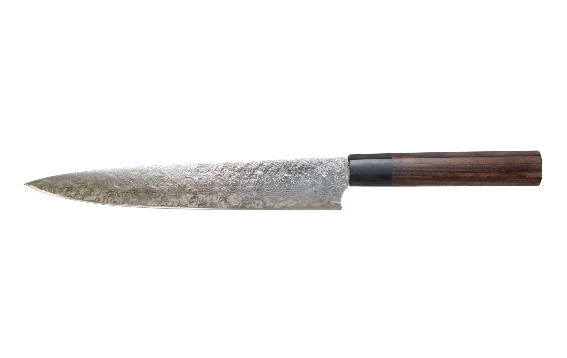 Couteau japonais artisanal SG-2 damas polish de Takeshi Saji - Couteau sujihiki 24 cm