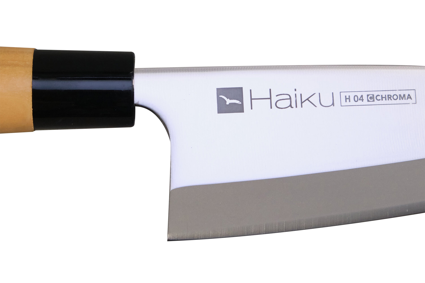 Le couteau japonais deba Haiku dispose d'une lame avec un tranchant asymétrique, il ne convient qu'aux utilisateurs droitiers.