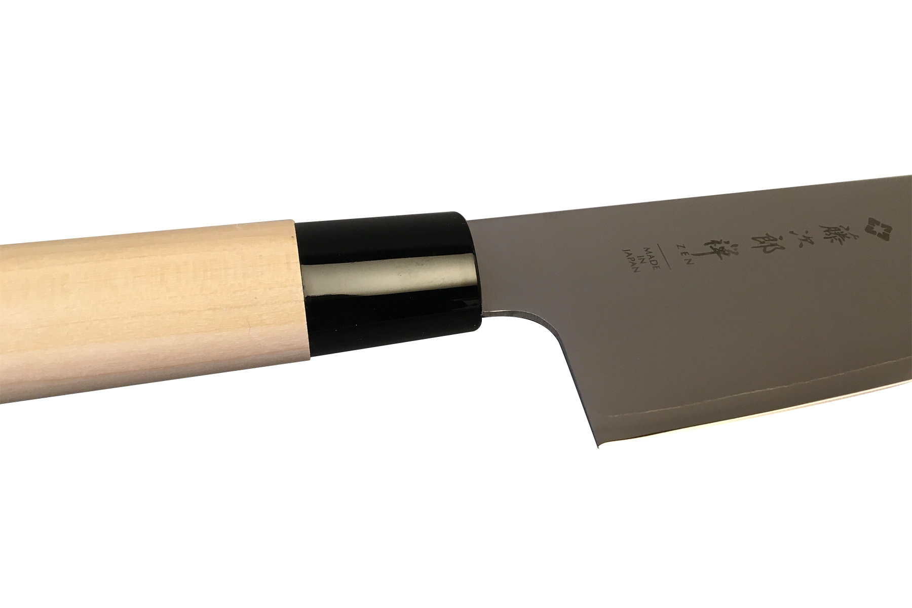 Ce couteau santoku Zen de Tojiro est le couteau qui conviendra pour de multiples découpes. Le santoku est le couteau de cuisine japonais traditionnel. C'est un couteau polyvalent en cuisine. Sa haute lame convient parfaitement aux découpes sur planche.