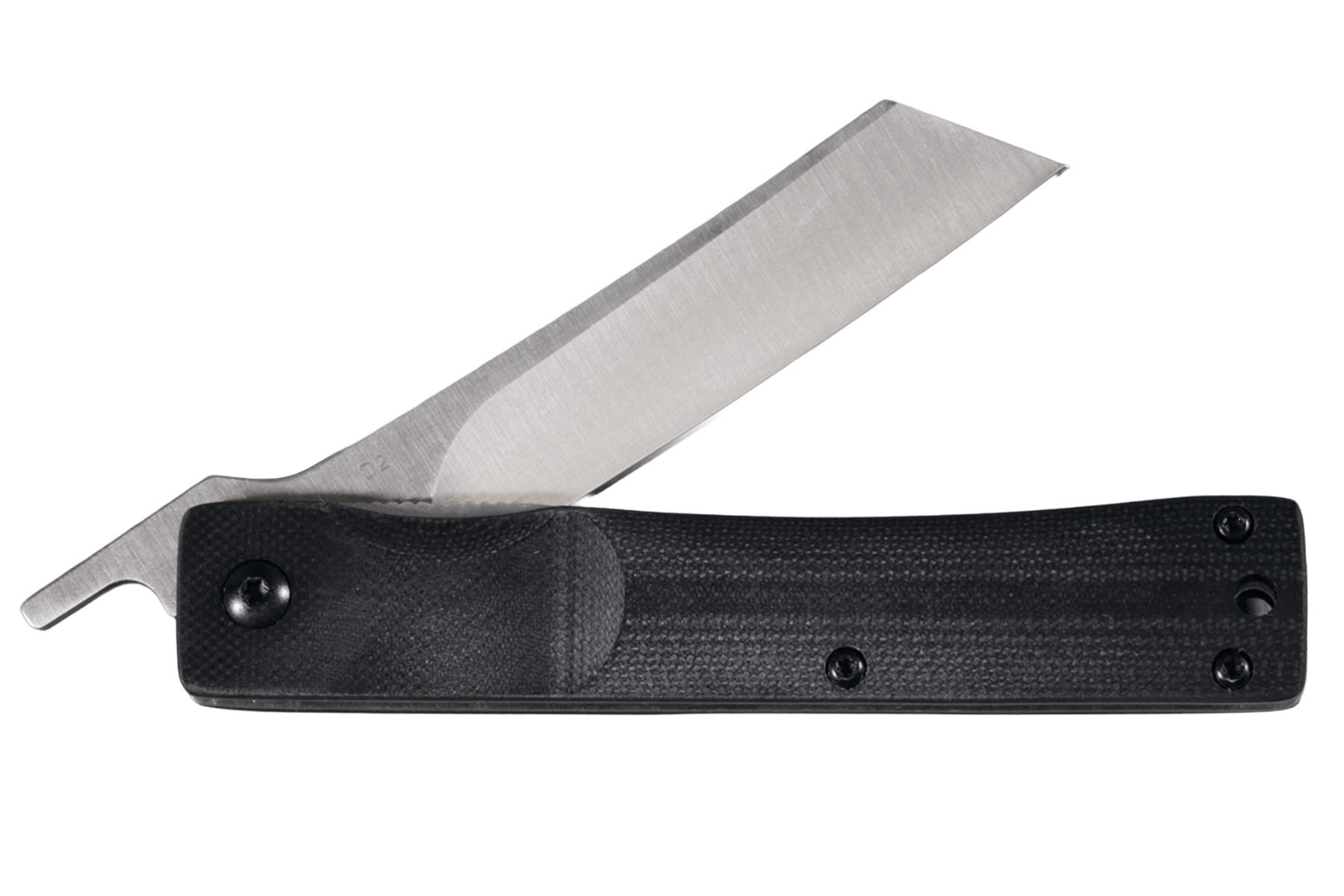 Un très beau couteau style Higonokami avec une ligne sobre et moderne, l'ajustement est parfait sans jeux latérale, l'ouverture piémontais est fluide. Sa lame de forme tanto inversé de 8cm , tranchant de 7cm n'est pas agressive avec ces 16mm de hauteur. Un couteau à garder en poche. Il lui manque par contre un étui adapté à sa forme particulière une fois fermé.