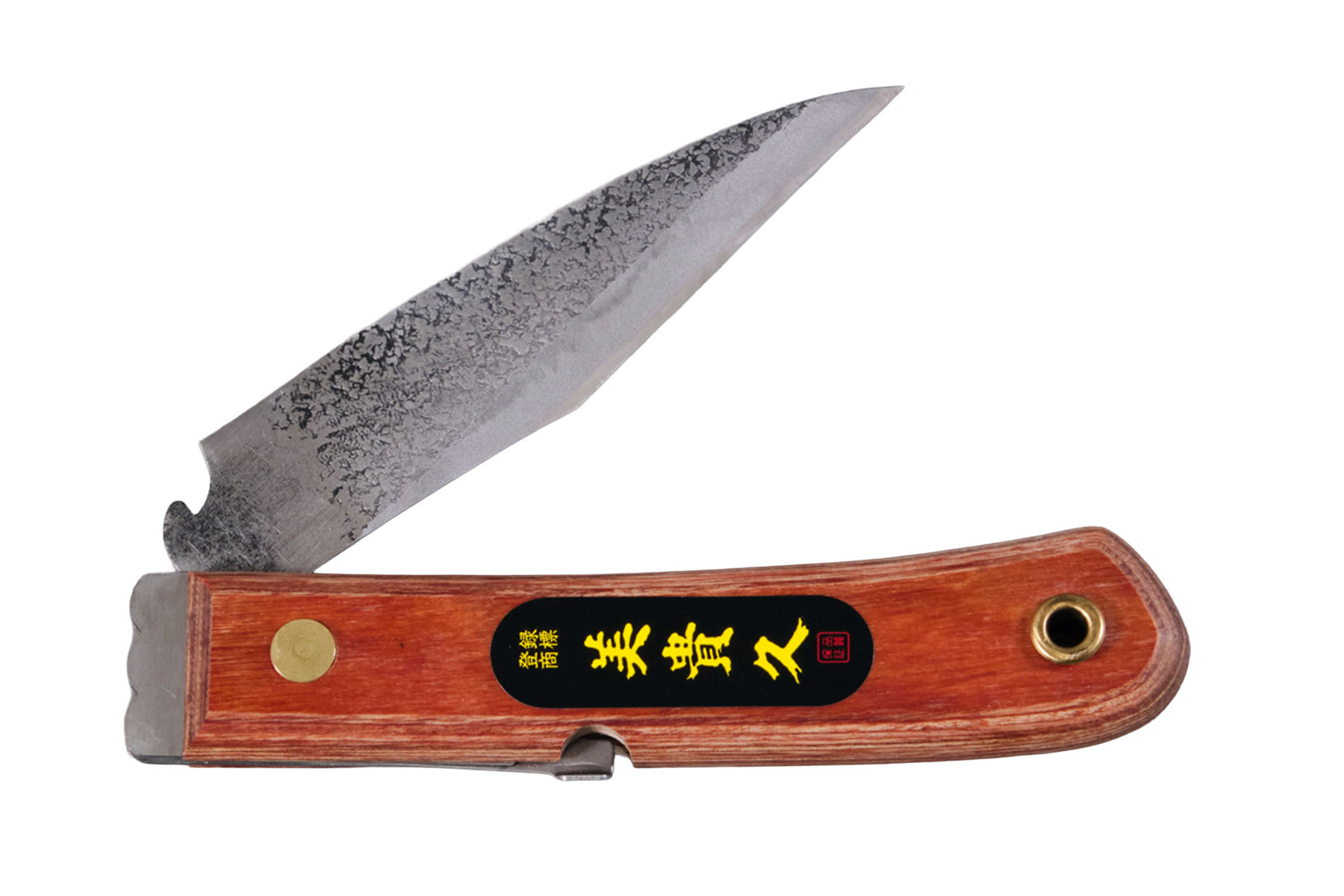 Ce kogatana est un couteau pliant équipé d'un système de blocage de lame. La lame se déverrouille grâce à une pompe arrière.