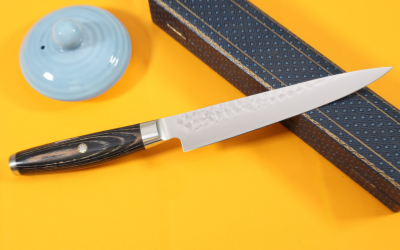 Le manche d’un couteau japonais Yaxell est réalisée en Micarta, un matériau naturel fait de résine et de lin qui procure de la résistance et des conditions d’hygiène optimales en prévenant tout défaut possible entre le manche et la lame en acier.
