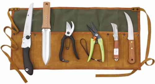 Le tout rangé dans une housse/tablier en croûte de cuir.